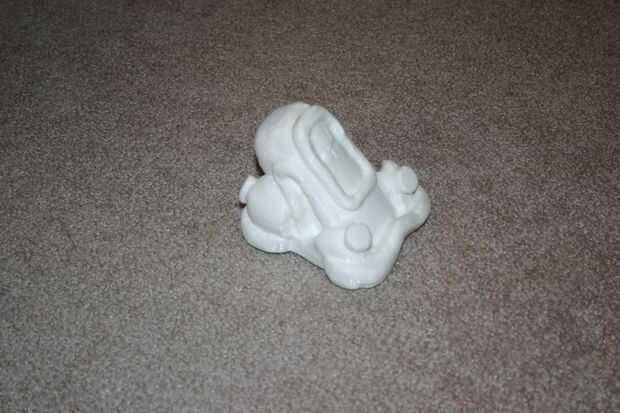 Usando TinkerCad, hace un agujero en la parte inferior del vehículo escaneada--apenas el tamaño correcto para el conjunto de la rueda.