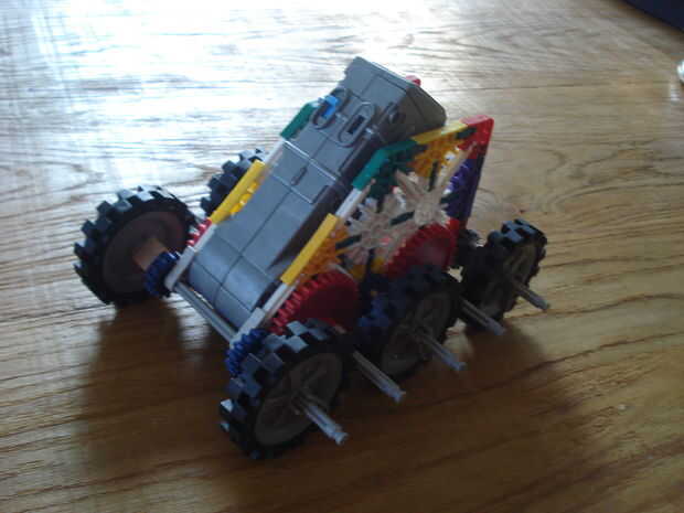 Hola, este es mi coche de sistema gyro k'nex, que es la primera vez en este sitio. El coche entero está hecho enteramente de k'nex. Utiliza un centenar k'nex piezas y ocho ruedas k'nex. Hice este coche con un diseño que vi en un coche de revista y us