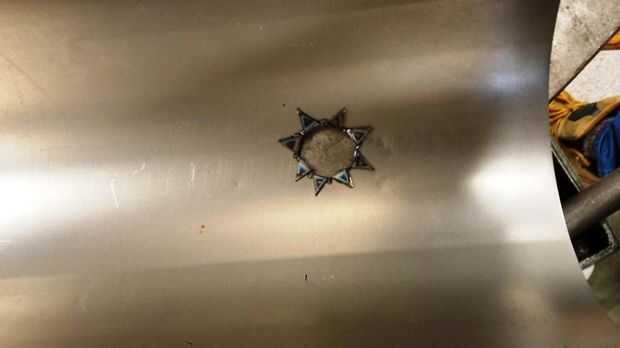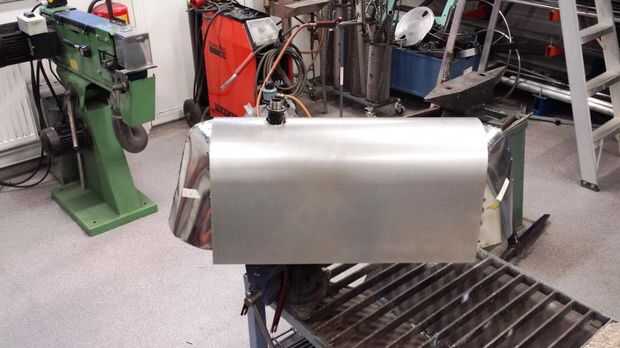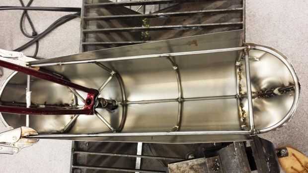 Después de que había soldado con autógena la hoja en su lugar había doblado los bordes inferiores de la hoja de metal alrededor de la base de la estructura con alguna percusión cuidadosa. Dio la falda una mirada bonita y segura.