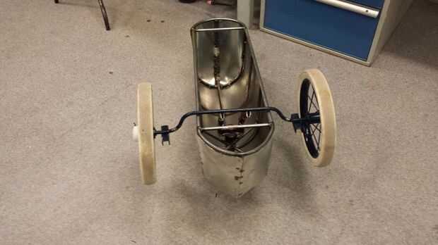 La cáscara del coche se hace de hoja fina de metal que requiere solamente un agujero para el soporte y cuidado doblado a la forma de U. Como ves en las fotos, me pareció muy difícil soldar chapas delgadas incluso con la menor corriente posible.