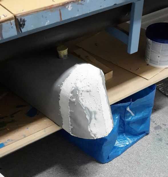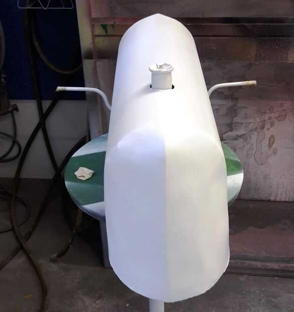 Usé el blaster de grano para limpiar todas las superficies antes de usar masilla para igualar especialmente la popa y proa que tenía abolladuras mucho sobre ellos. Después de algunos seria lijar el coche estaba listo para la imprimación blanca y pintura en aerosol blanco mate.