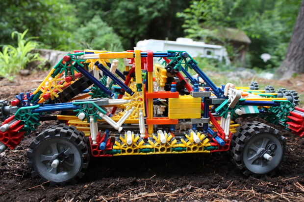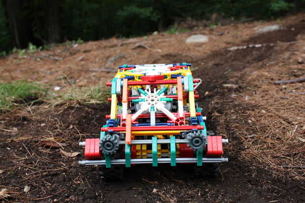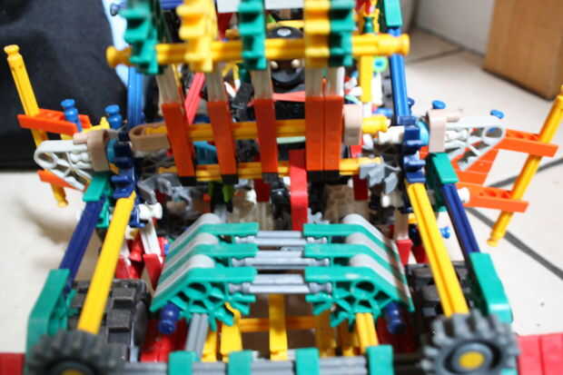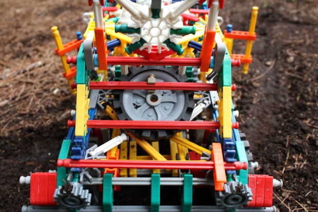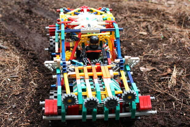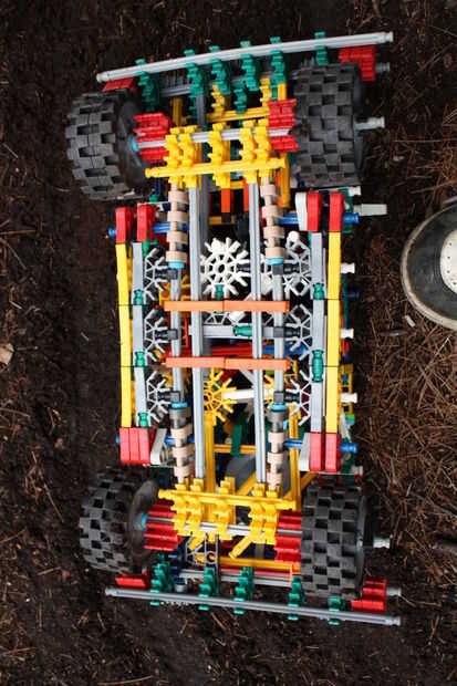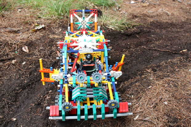 bueno, este es el primero de mi serie de mi coches de batalla KVG. Se trata de la desfibradora, cuenta con un sistema de engranaje que hace que una cosechadora como hoja a girar cada vez que se mueve. Es un sistema de tres ruedas y es blindado bien.
