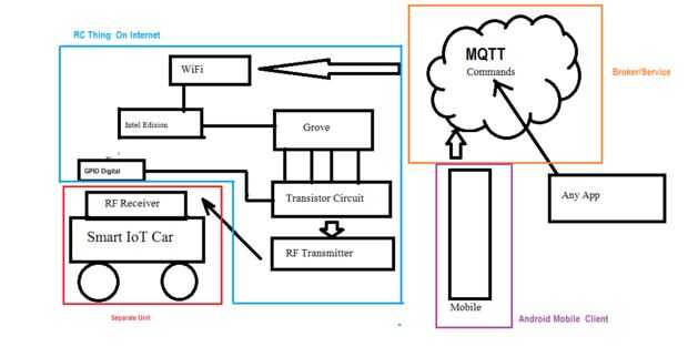 Una vez que somos capaces de recibir comandos remotamente por Edison y capaz de controlar los pines GPIO, podemos ir para hack hardware. Entonces podemos venir atrás combinando el hack con Edison para obtener un mando a distancia RC en Internet.