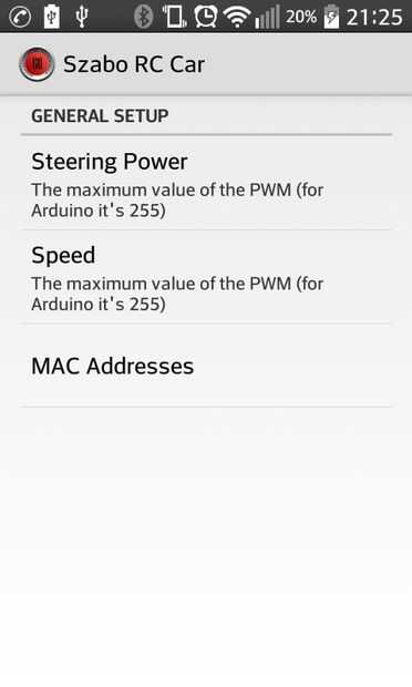 Empezar a correr Szabo RC coche aplicación, vaya a configuración y configurar la dirección MAC.