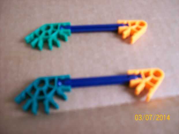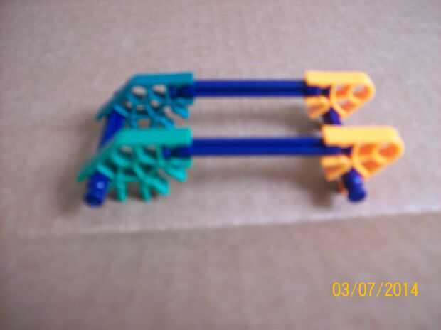 Conectar las pinzas azules a los clips de naranja y luego agregar los clips verdes al final