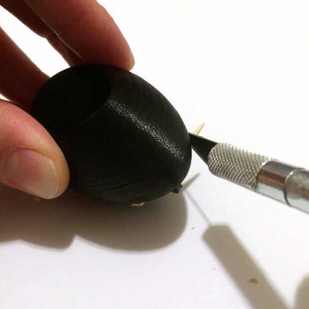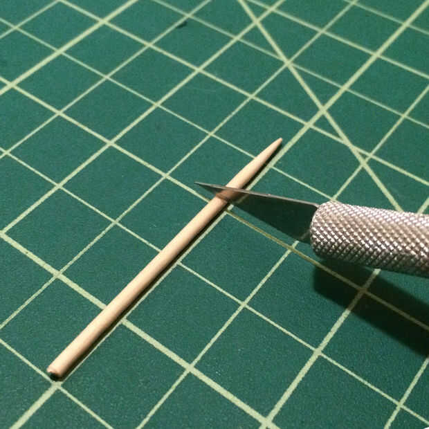 • Cuando el palillo esté firmemente en su lugar, recortar el exceso de longitud del palillo de dientes con un cuchillo del exacto. Me pareció más fácil anotar el palillo con el exacto y justo romper el exceso con los dedos.
