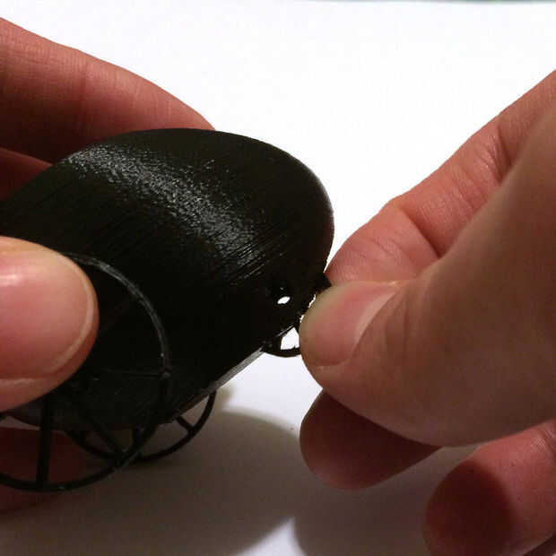 • Deslice el palillo de dientes (con la rueda de conectados) a través de los orificios en la parte posterior del coche.