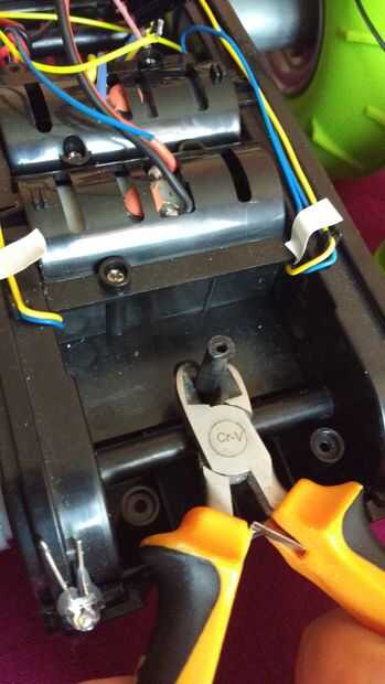 - Ahora, usando sus alicates de corte, corte el poste de plástico de la antena para hacer espacio para el módulo de WiFi en la parte delantera (Fig. 4)