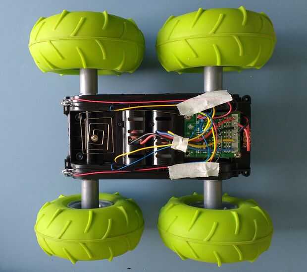 Ahora debería ver el interior del coche (imagen 2) con electrónica RC/coche en la parte trasera, los dos motores en el medio y la antena que va al frente.