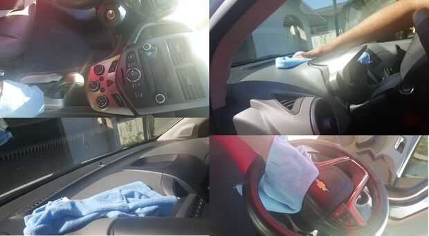4. Con la microfibra húmedo paño limpie todos los adornos de puerta y tablero