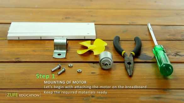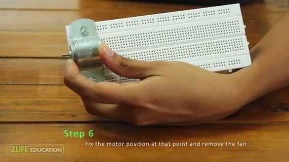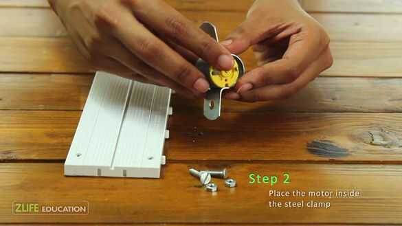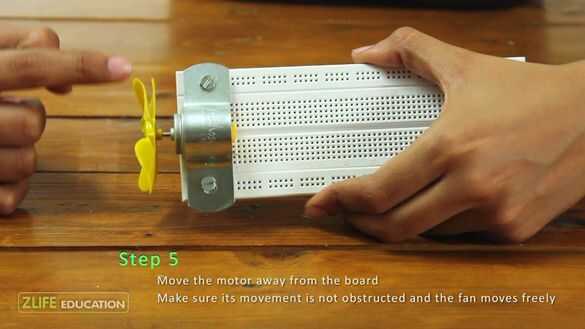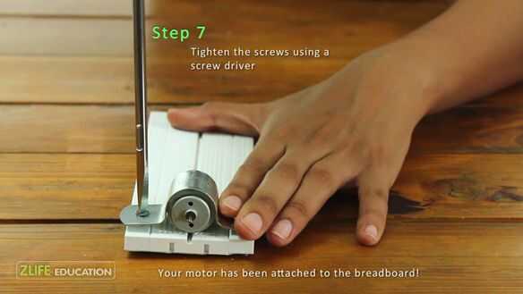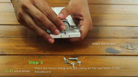 2. Ahora coloque el motor junto con la abrazadera en los dos agujeros en el tablero de pan e inserte los tornillos.