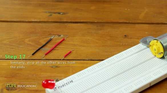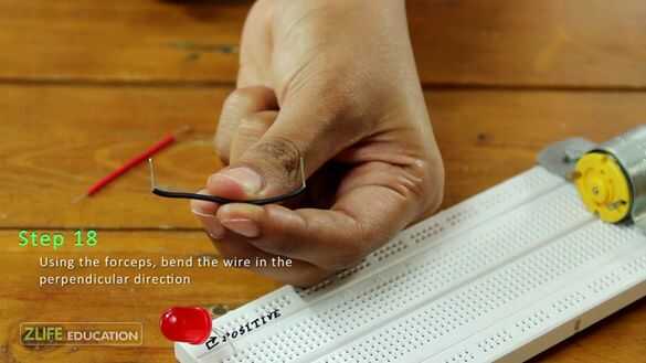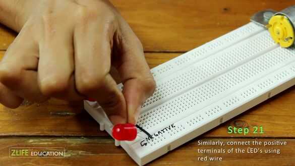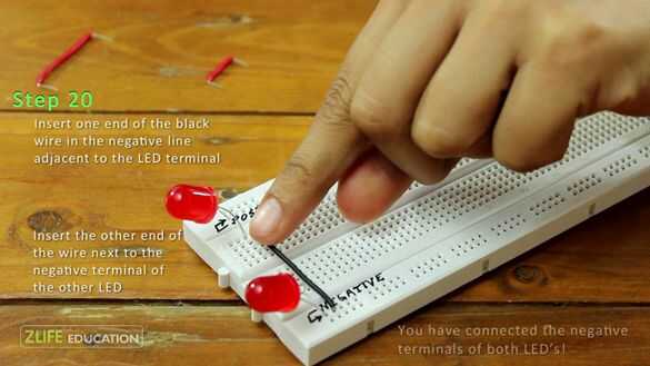 • Retire la cinta y coloque la batería entre los LEDs y asegúrese de que el extremo posterior es de unos 1 cm fuera del tablero de pan.
