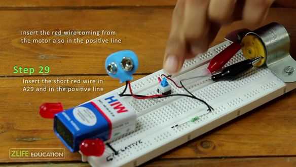 • Insertar el cable rojo corto en la línea positiva y A29 e insertar el cable rojo que viene del motor también en la línea positiva.