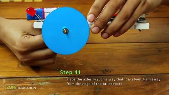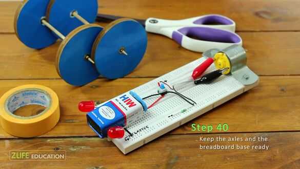 • Coloque los ejes de tal manera que es cerca de 4 cm del borde de la Junta de pan y colocar las ruedas con cinta aislante.