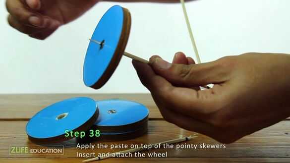 • Aplicar la pasta sobre los pinchos puntiagudos e insertar y fijar la rueda.