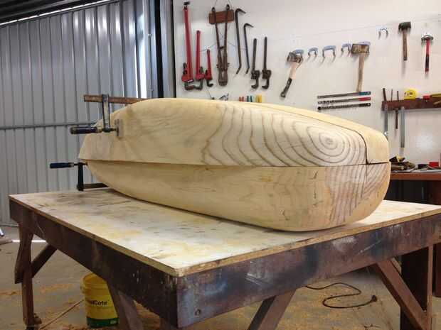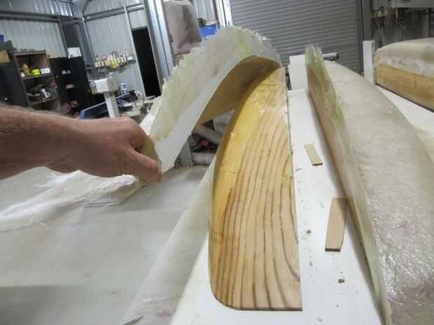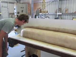 Razones para utilizar un registro están doble, en primer lugar costo - tenía un registro antiguo en el paddock por lo que no cuesta nada excepto el tiempo y en segundo lugar la madera dará una superficie más rígida más fuerte que la espuma al molde en. Se puede formar fácilmente con herramientas de carpintería de madera y puede ser acabado fácilmente a una superficie de buena calidad. Después de la toma era rociar con barniz del lustre y dado varias capas de cera de liberación de molde y rociado con una capa de liberación de molde de pva