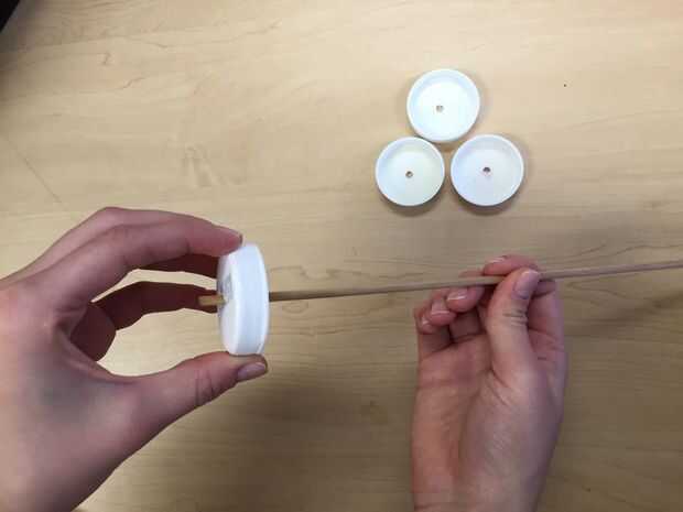 Poner el pincho a través de la tapa, dejando alrededor de un cuarto de pulgada en la parte exterior de la tapa. Ver la imagen.