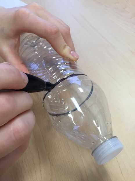 Utilice un rotulador para indicar donde se corta la botella. Ver la imagen.