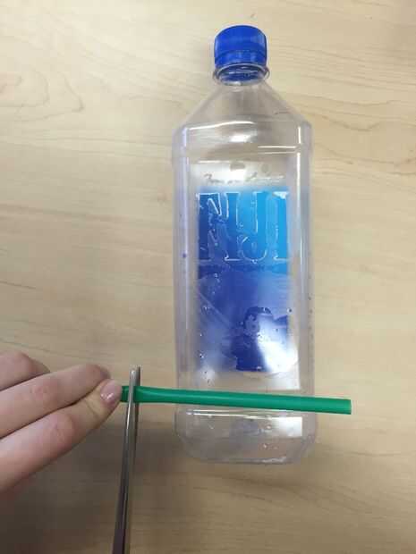 Corta la paja, dejando 1 pulgada a cada lado de la botella. Ver la imagen.