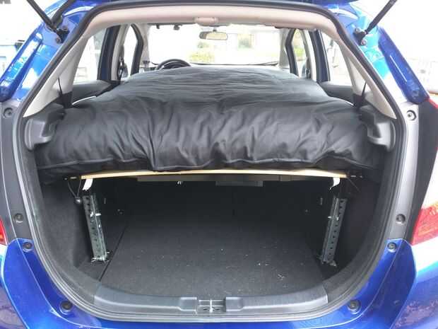 Tenía un número de requisitos en mente cuando comencé este proyecto. En primer lugar, quería hacerlo como económicamente como sea posible y de partes que serían bastante fáciles de acceder. No quiero tener que hacer modificaciones al coche sí mismo. El marco y la cama tendría que ser ligero para mantener tan alto como sea posible pero aún fuerte, de combustible ya que soy un chico bastante grande. Puesto que la tarjeta que tenemos es un Honda Fit, que necesita para aprovechar al máximo el poco espacio disponible sino que también proporcionan bastante espacio para mi esposa y yo a dormir cómodamente. También quería que toda la trama para ser fácil de instalar en el coche y quitar cuando no esté en uso.
