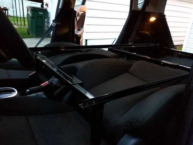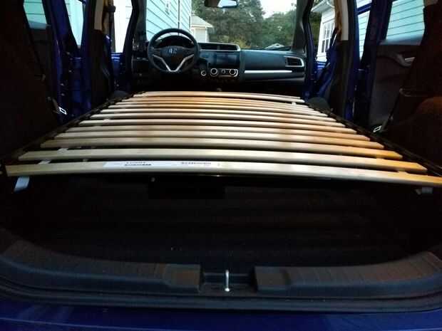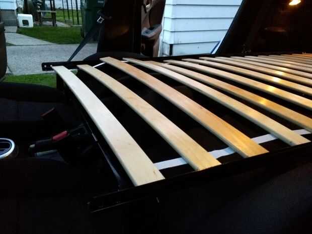 La razón para ir con un marco de tamaño completo, aunque sólo puedo usar marco de tamaño twin en el coche, es que puedo ahora fácilmente utilizar el marco exterior del vehículo también, como un marco de cama de persona extra, no más dormir en el piso. O, si configuramos una tienda podemos tener una cama de verdad en la tienda.