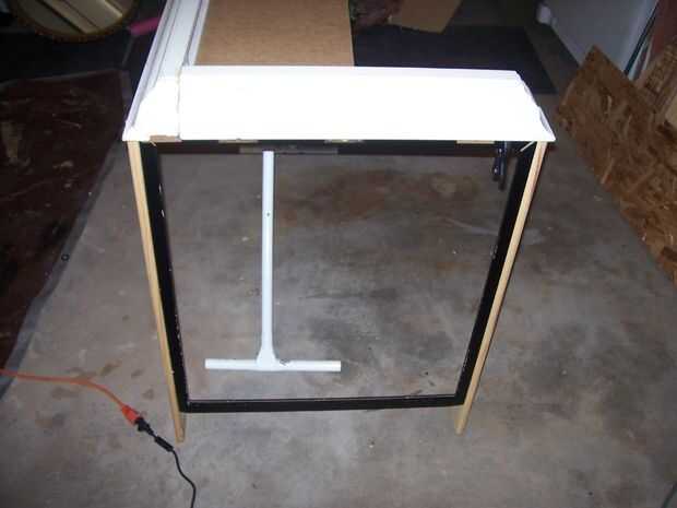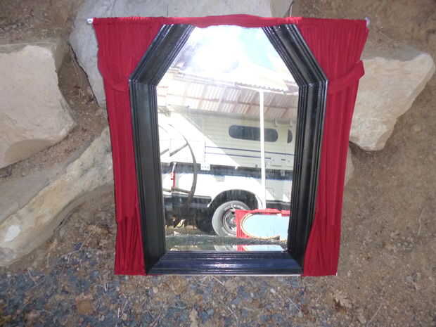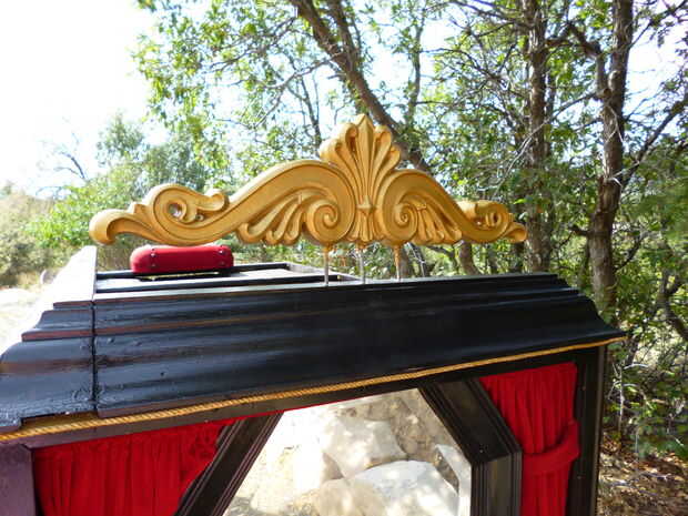 Otro marco fue con bisagras en la parte inferior de la parte de la moldura que se ve desde la parte trasera de la carroza, creando el aspecto de la puerta de atrás. Una vez más, la ilusión de cristal en la puerta de atrás se logra colgar otro espejo decorativo, en que tela roja ha pegado alrededor de él y entonces aseguró que el listón posterior del cuerpo con alambre.