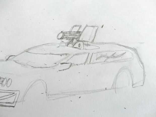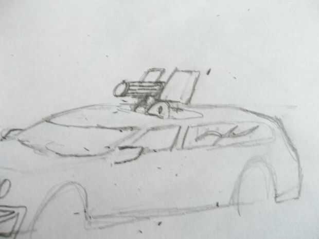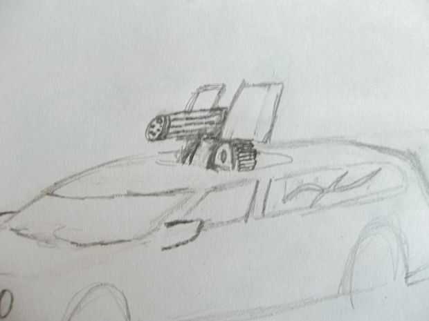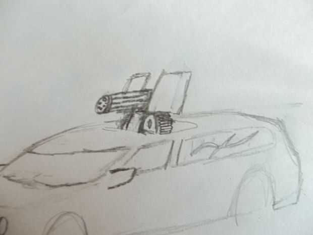 Ahora los barriles, que está formado por un barril grande saliendo directamente de la brecha entre la explosión sheilds. Que añadir más líneas para dar la apariencia de barriles también hacer un círculo oval-como para formar la articulación de bisagra entre la pistola y la base. Dibujar otra línea curva en la misma curvatura como el óvalo en la parte delantera de la pistola para formar el aspecto de la ametralladora. Que acabado el arma dibujando los huecos para los cañones y las balas en la pistola.