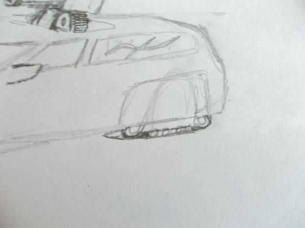 Ahora, normalmente utilizo tapacubos para flujo aerodinámico pero en este caso es guardar la pista de los enemigos. El fondo de la pista está en el mismo ángulo de la carroza sino en el cercano brotes laterales por debajo de ella.