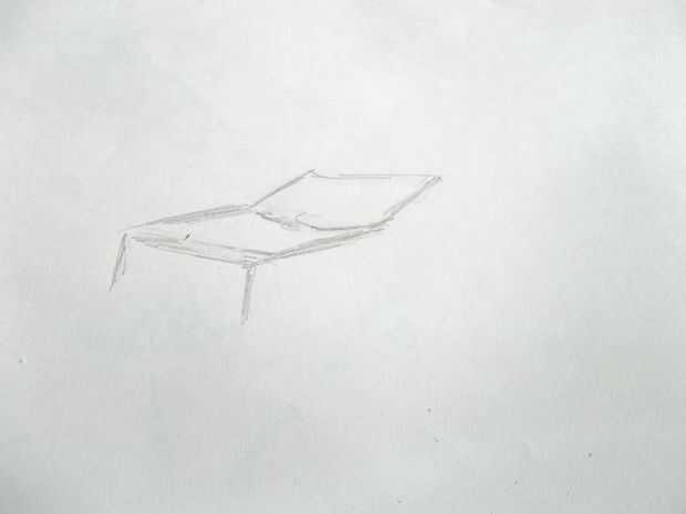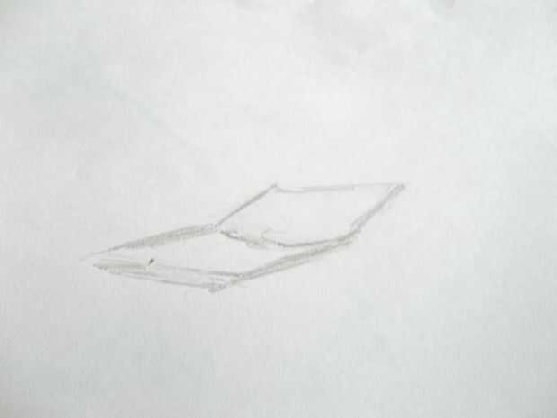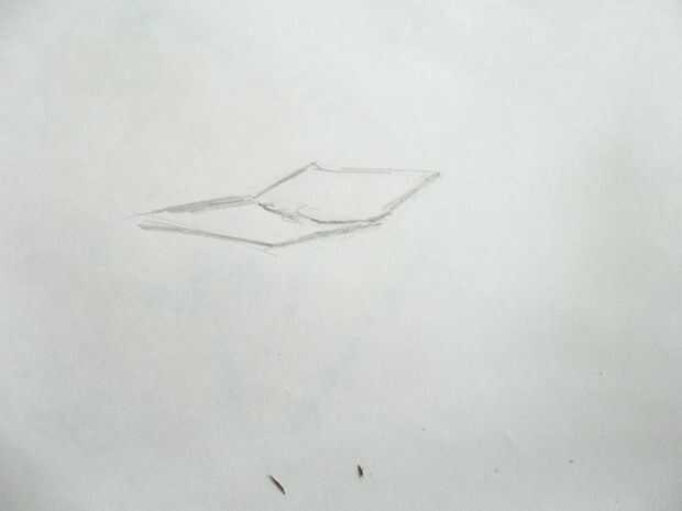 Al sacar la campana. Se hace por líneas ligeramente inclinadas debido al ángulo que estará sentado en el coche fúnebre. La parte delantera de la campana está inclinada en sobre el mismo ángulo que el windsheild. Las líneas señala hacia abajo muestran aproximadamente donde estarán los rincones de la carroza.
