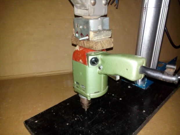 Perforación de 100 hoyos en tablero de fibra es tedioso, difícil de hacer cuidadosamente y propenso a pedacitos. ¿Qué métodos simples y herramientas están disponibles para caseros mini taladro prensa de PCB con eficacia?En mi caso solo va a ser utili