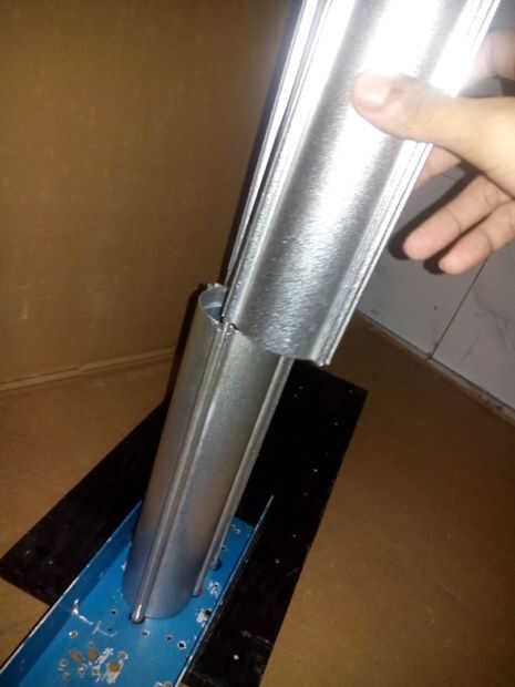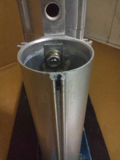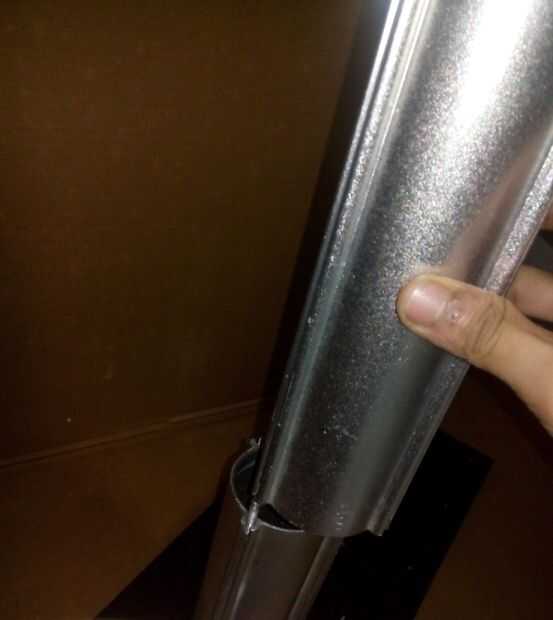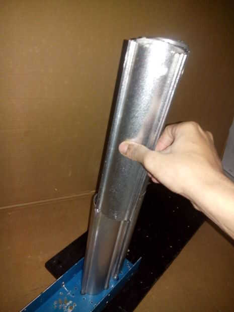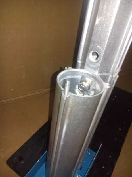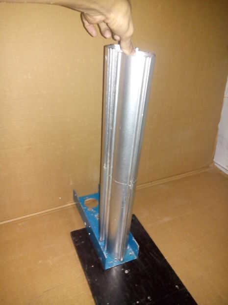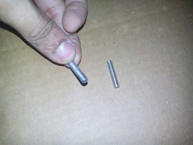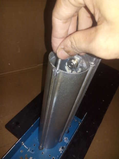 AHORA TOMA LA OTRA VIGA Y FIJARLA EN LA ESQUINA DEL HILO DE ROSCA DE LA COLUMNA FIJA. TOMAR LA OTRA COLUMNA DE METAL Y COLOQUE LA ESQUINA DE HILO DE ESE METAL COLUMNA EN ESO PERNO PRISIONERO E IR A GIRAR LA COLUMNA HASTA QUE ESTÉ APRETADO.