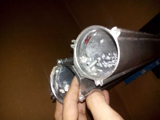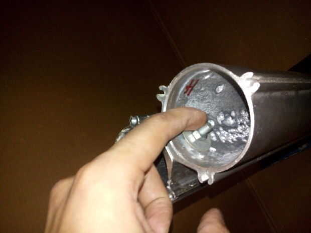 PARA AGREGAR MÁS RIGIDEZ A LA ESTRUCTURA, HE ARREGLADO LA COLUMNA DOS CON TORNILLOS Y LA TUERCA EN LA PARTE SUPERIOR DE LA COLUMNA DE METAL.
