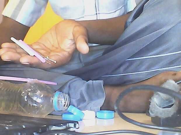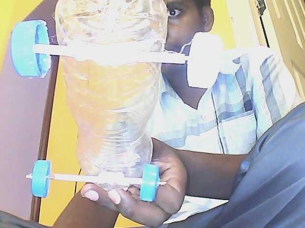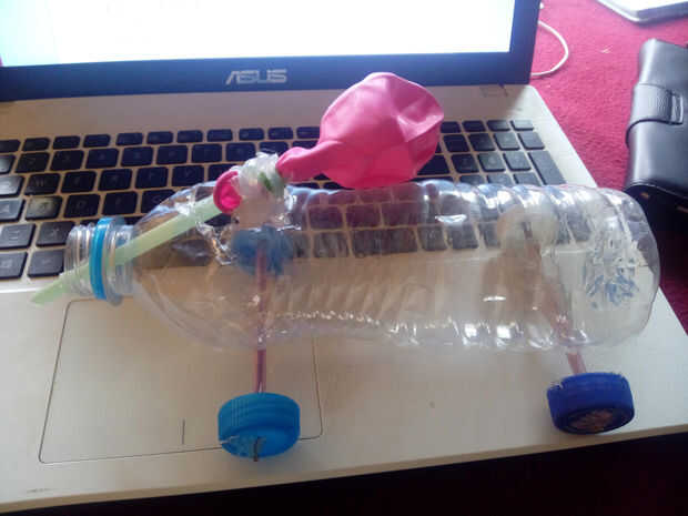 Hola amigos soy Ajay g, soy de espacio Banjarapalya E4D Maker.MaterialesBotella de aguaStrowsGlobosDisco rubberbendsRuedasRepuesios de la plumaHerramientasTijeraPegamento calientePaso 1: Hacer un conjunto en botella watter En primer lugar tenemos que