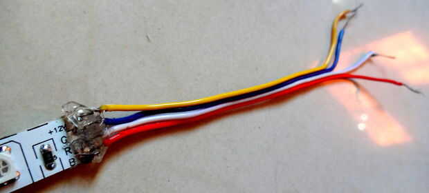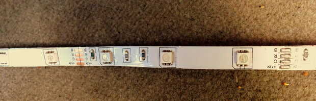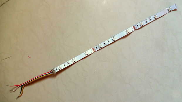 Necesitamos 4 tiras para nuestro proyecto. Cada tira de LED tienen las líneas de corte después de cada 3 LEDs. Tenga en cuenta a la corta que a corte mayor de lo necesario, si es más grande que puede colgar y uno no amaría a ese sitio.