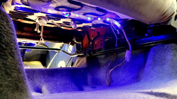 Ahora con el bajo asiento LED aquí en lugar de utilizar pegamento o cintas adhesivas solo lo colocó entre los resortes y una cadena para amarrar al otro extremo.