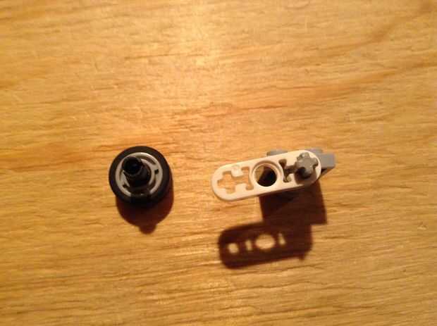 rc coche de Lego que tiene dos ruedas y rueda delantera de dirección. Lego de utiliza energía funciones motor servo y motor grande y receptor de infrarrojos y mando a distancia.Paso 1: manejo El servo motor gira un engranaje que se desliza una barra