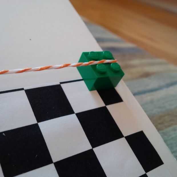 Colocar los ladrillos de lego de 2 x 2 para proporcionar cierta tensión y altura a la cuerda, por la imagen.