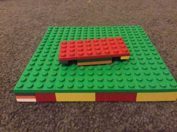 Creación de LEGO a base de muebles parece ser un derecho de paso para todos los padres. Aquí es mío. Paredes laterales de gran tamaño contienen el LEGO en la mesa durante la descarga. Una montaña personalizada con placas base LEGO anima a construir e