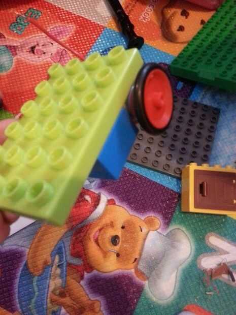 1. poner 2 x de 2 x 2 legos en el centro y debajo el lego de 6 x 8. Estos dos legos ayudará a mantener los motores estables en su lugar.