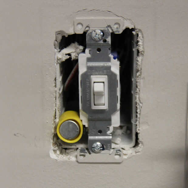 No corté la corriente al interruptor, pero aconsejo a otros a hacerlo. Se dan cuenta donde están conectados los cables al interruptor. Había un tornillo de ese lado del interruptor para el alambre caliente. Por lo tanto, puse el imán junto al tornillo verde de tierra en la parte inferior. Eso es todo! Usted es hecho! El resultado es un sorprendentemente fuerte gancho magnético para llaves (como se ve en la primera imagen).
