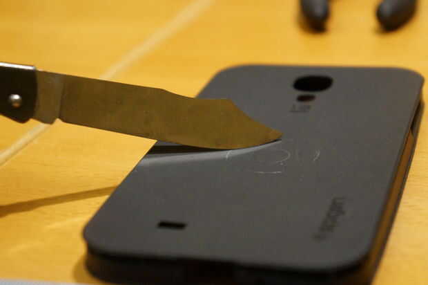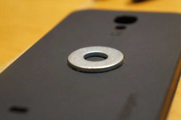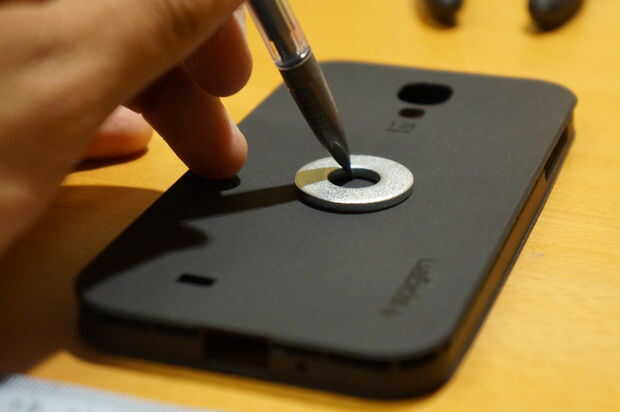 1) centro y delinear la arandela más grande (el uno que el tornillo pasa a través de) en el caso