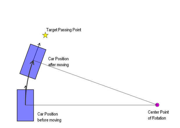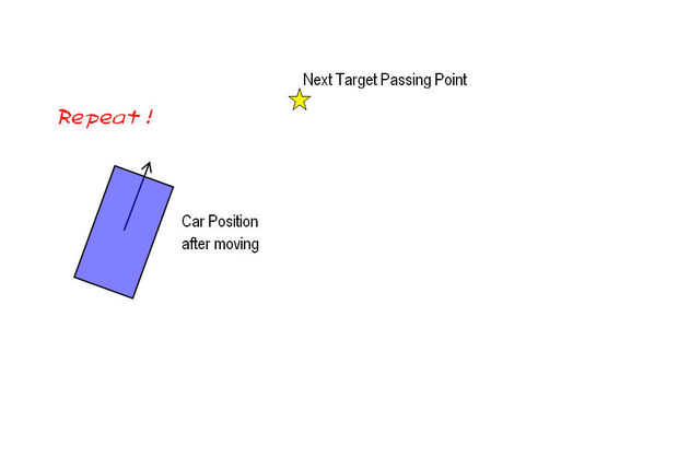 En este programa de simulación, punto de partida del coche, dirección de arranque del coche y destino paso de puntos se suministran como datos de entrada, luego steval (valor de servo de dirección) y la dirección del coche cada 2 balanceos del neumático se obtienen como salida de datos. Estos datos de salida serán utilizados para la conducción automática.