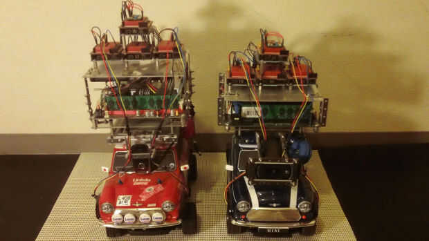 No.06 del coche se compone de chasis 4-volante, cuerpo de R/C coche y coche Top PC con 4 Arduinos y cámara Web.