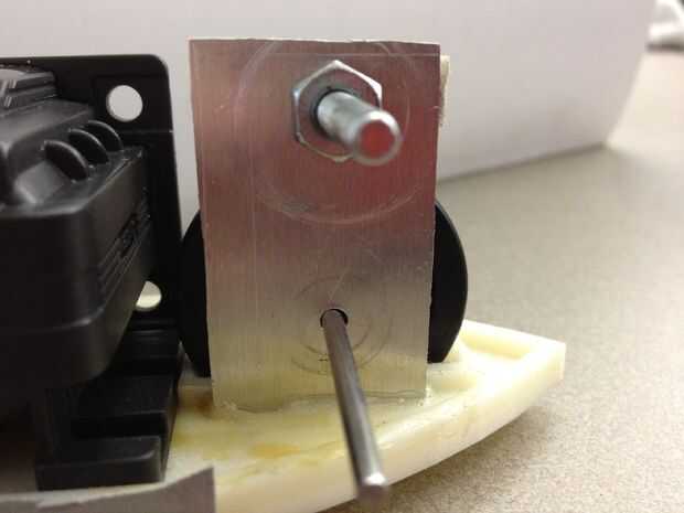 Este árbol estaba hecha de una varilla delgada de aluminio y más adelante fue pegado a la rueda debido a nuestra opción de tren de la impulsión. Nuestro tren de la impulsión utiliza un sistema de correa de goma y se combina con dos piezas de encogimiento del calor de proveer suficiente fricción que hacer girar el eje, así como la rueda. El eje tiene una longitud de casi 2 pulgadas de largo y un diámetro de ~0.15 en. Esto fue diseñado sea mayor que la anchura del kart pero no mucho para evitar cualquier captura con objetos o paredes. El eje trasero es el que se une al tren de la impulsión para el encogimiento del calor está en aquél.