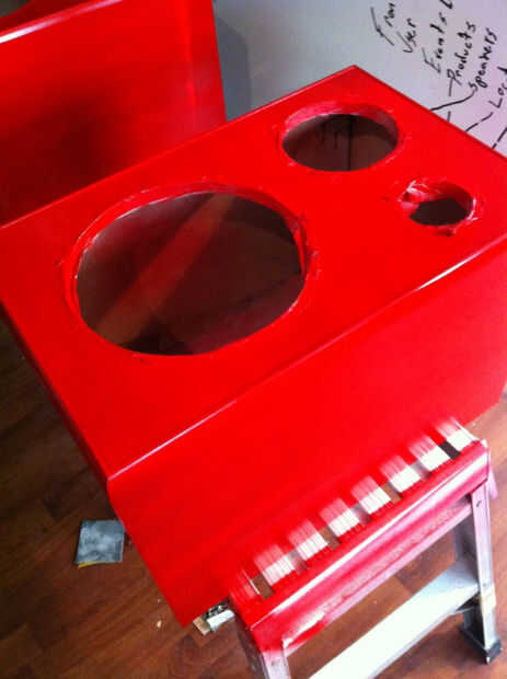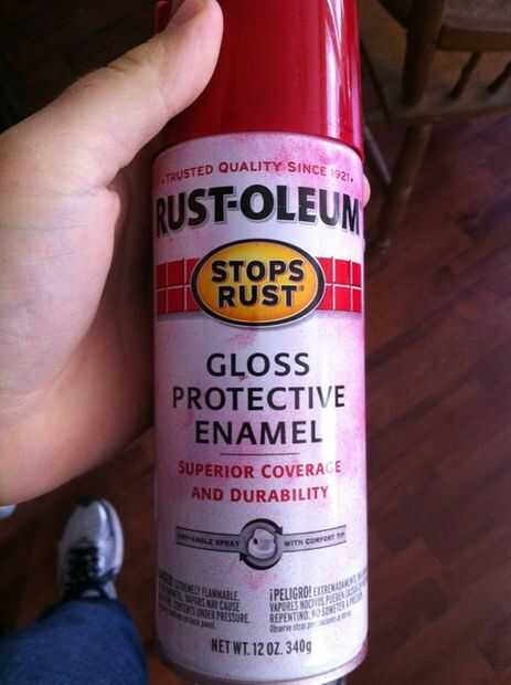 Así que aquí están después de una capa de rojo. Usé pintura Rust-oleum brillo protector esmaltada. También utiliza Rust-oleum imprimación y capa clara en este proyecto.