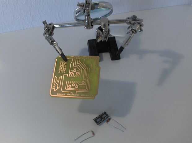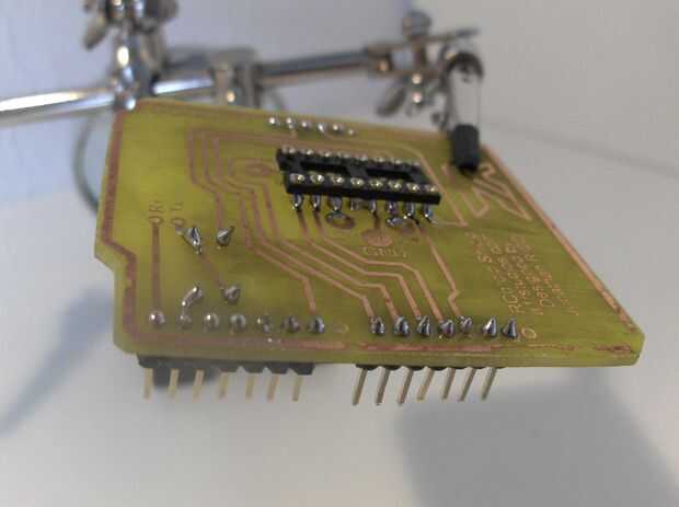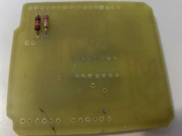 -La soldadura del zócalo del IC (Fig. 2) -la soldadura de las resistencias de 10k y 20 k (Fig. 3) -la rotura de la soldadura ausentes cabeceras -usted debe obtener algo como pic. 4 y 5.