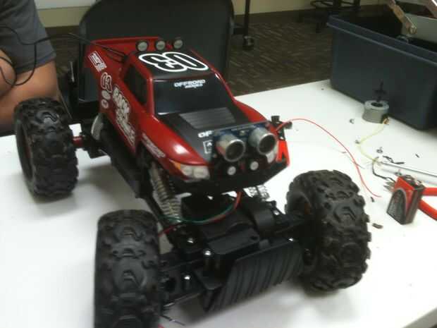Este fue mi proyecto final para el programa de electrónica de ITT. es un obstáculo, evitando el "bot" que se armó en un affternoon antes de la clase.