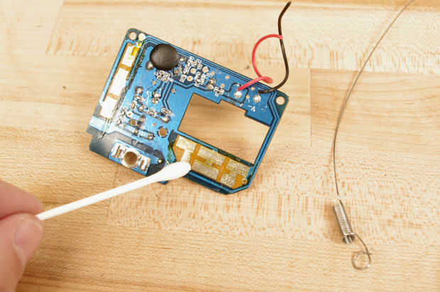 Use un q-Tip en alcohol isopropílico para limpiar cualquier grasa que pueda haber en los contactos de los controles de joystick.