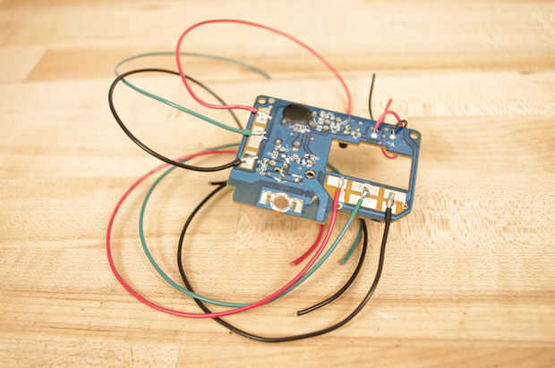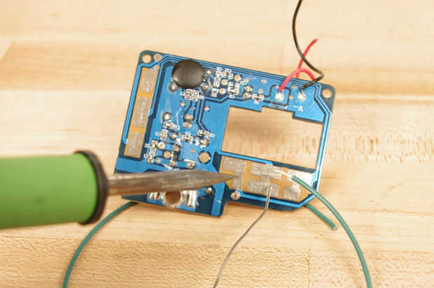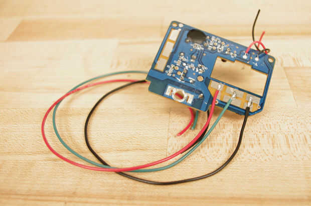 Soldar los cables a cada una de las almohadillas de contacto para palancas de mando del control remoto.