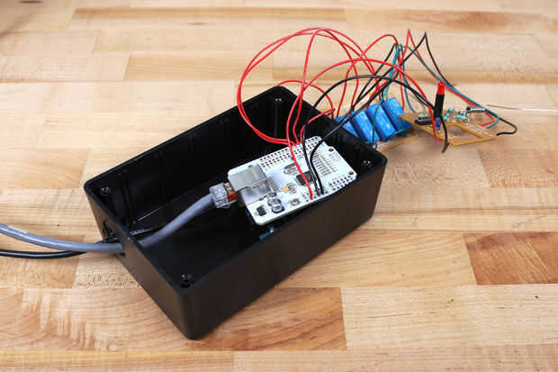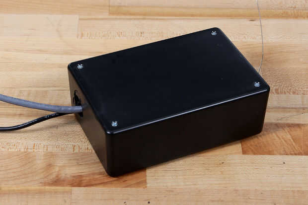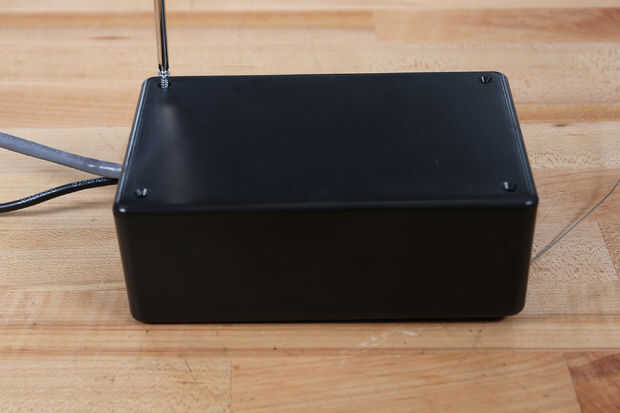 Coloque el Arduino y circuitos relacionados dentro de la caja y pasar la antena por el agujero de 1/4" en el recinto.